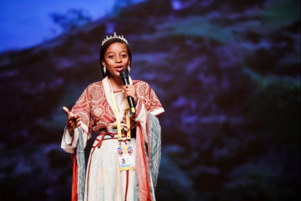 加纳选手依依以“我的中国梦”为主题,深情地讲述了她对中国的热爱。她认为,加纳和中国虽然相隔千里,但人民之间的友谊却亲如兄弟。依依爱中国,喜欢中国文化。她的心中有个美丽的中国梦,那就是“希望在中国读大学”!中国悠久的历史,灿烂的文化,多姿多彩的民族风情,以及令人流连忘返的美味佳肴……这些都深深吸引着依依。她说:“长城、故宫、莫高窟、兵马俑,不仅是中国文化的瑰宝,也是世界文化的瑰宝。我坚信,千里之行,始于足下。中文是我飞向中国的金色翅膀!”
