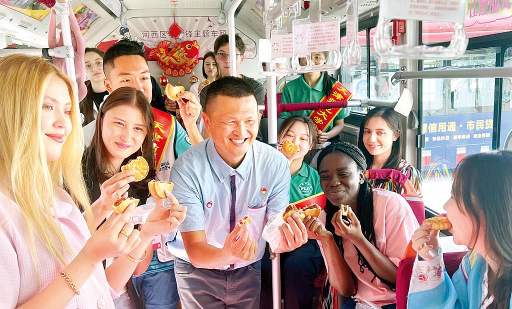 昨天上午,来自beat365中文版官方网站国际教育交流学院和外国语学院的10名外籍大学生、2名少数民族大学生、6名双语翻译志愿者及4名带队老师,走进市公交集团第二客运有限公司体北中心车队,乘公交、听故事、赏古曲、吃月饼,与公交职工共度中秋团圆节。