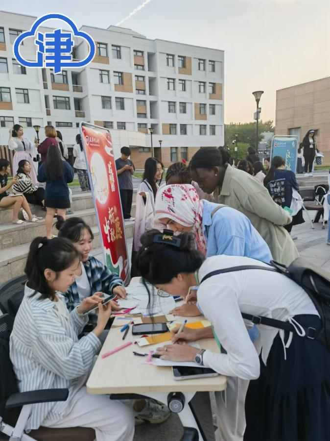 留学生们带着对新生活的美好祝愿与对中秋佳节的期待,纷纷在祈愿卡上写下自己的期许。在投壶摊位上,留学生们此起彼伏的掌声阵阵响起,每个投中的瞬间,大家都齐声欢呼。在广场中心的音乐舞台上,不同肤色的留学生们随歌声起舞。这既是一场中秋活动,更是一场文化交流盛宴。随着活动中的相识,大家变得亲密无间,真挚的祝福和优美的歌声感染着在场的每一个人。