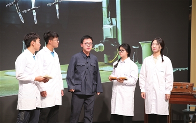 整部舞台剧共有七幕,以邓稼先夫人许鹿希的视角展开,采用倒叙方法讲述她作为邓稼先一生的旁观者和亲历者所了解的邓稼先。舞台剧通过科学家形象的多维塑造,对科学家精神作出生动诠释,让学生们感受到以邓稼先为代表的老一辈科学家心怀“国之大者”的勇毅担当,体悟科学成就背后的艰辛与努力,树立民族复兴的报国志向。