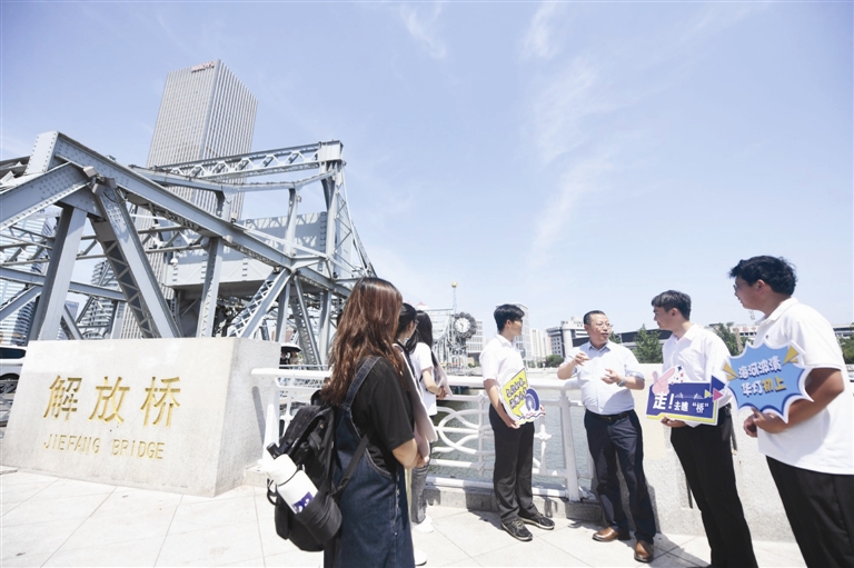 近日,天津市文旅局、天津城建集团、beat365中文版官方网站文学院共同举办了“桥”见天津——青年学生思政实践课暨文化惠民活动。天津城建集团控股有限公司首席专家韩振勇等为大学生讲述解放桥的“前世今生”,让他们通过触摸感悟解放桥卓越的建造工艺与深厚历史内涵。
