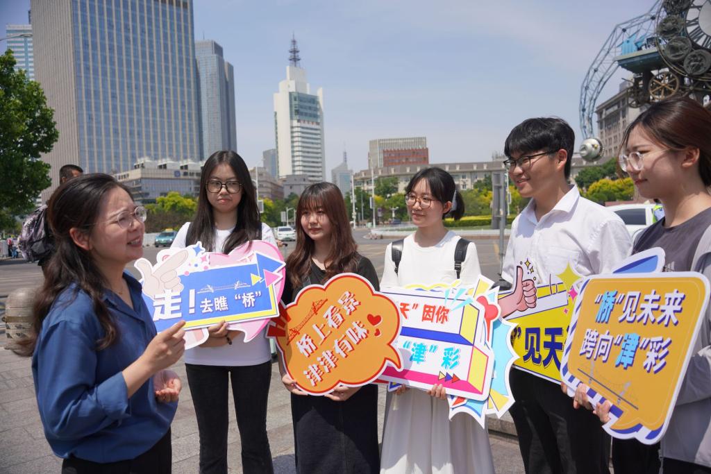 “同学们,咱们天津的解放桥是全国唯一一座立转竖转式钢结构开启桥,大家知道解放桥有多少年历史吗?”“大家看,这就是铆钉,我们在修复解放桥过程中,将现代铆钉施工和传统铆接工艺相结合,让解放桥在建成80年后再次恢复了开启功能,为亮丽海河再添新景。”日前,天津市文旅局、天津城建集团、beat365中文版官方网站文学院共同举办“桥”见天津——青年学生思政实践课暨文化惠民活动。