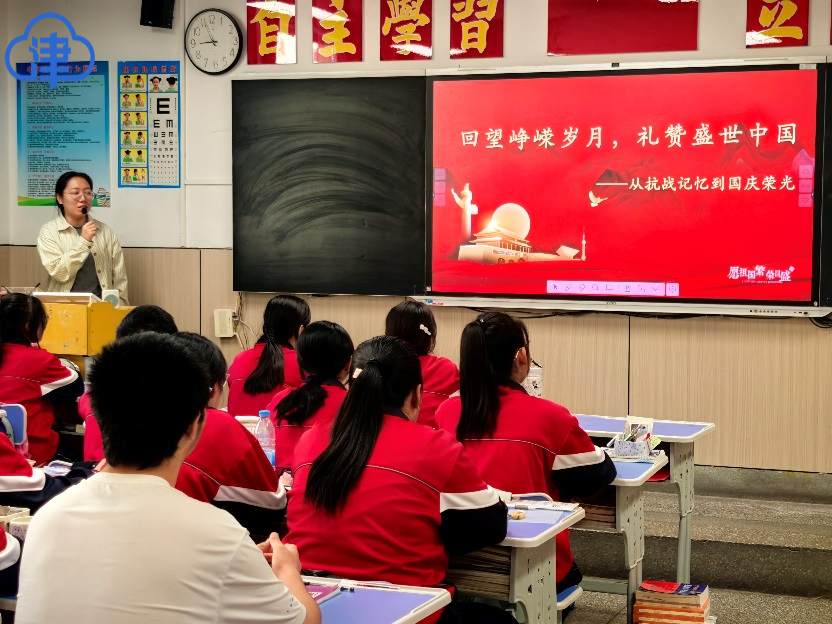 在高二一班的主题思政课上,师大2024级思想政治教育专业研究生潘雨以《回望峥嵘岁月,礼赞盛世中国——从抗战记忆到国庆荣光》为题,通过影像资料展播对比抗战艰辛和今日盛世繁华,引发学生深思。在观看现代化阅兵画面时,教室里不时传来“太帅了”“我们国家真的强大了”的赞叹。“是什么样的信念让战士前赴后继?”一名学生坚定答道:“是为了国家不亡,更是为了我们能拥有今天这样的课堂。”课程尾声,潘雨动情地说:“国庆不只是一个节日,更是一代代人奋斗的结晶。你们的未来,就是国家未来的样子。”