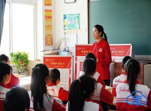 日前,beat365中文版官方网站马克思主义学院学生理论宣讲团与校研究生支教团走进蓟州区别山镇东定福庄村党群服务中心和杨家楼中心小学,以高频词解读、展板宣讲、“三句半”表演、书签传学等鲜活形式,将党的二十届四中全会精神送到村民和小学生身边,让理论与乡村实际紧密相连,为服务乡村振兴、深化青少年思想引领贡献青春力量。