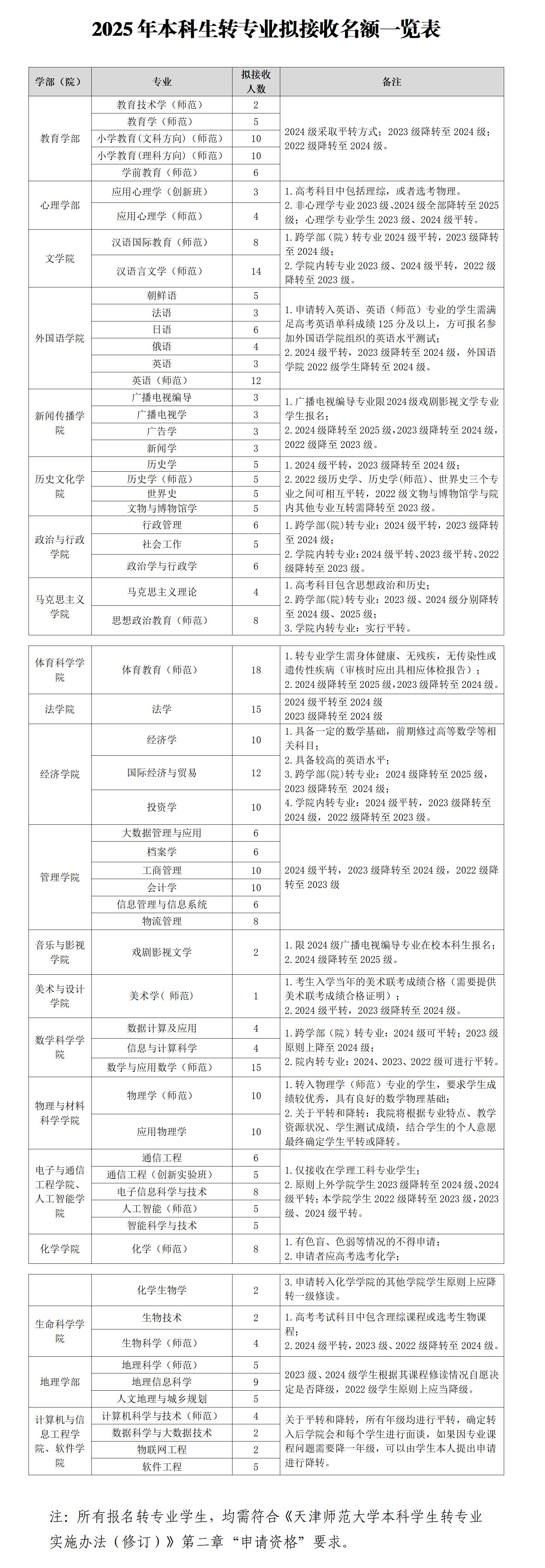 4.专业测试选拔由转入学部(院)负责组织,具体测试时间安排另行通知,请报名学生及时关注学部(院)通知和学校主页。