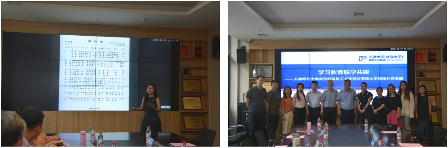 本站讯(通讯员 卜一凡)为进一步推动深入贯彻中央八项规定精神学习教育走深走实,不断加强支部间的交流合作,6月9日下午,音乐与影视学院键盘与器乐教工党支部与天津大学招标办党支部在天津大学北洋园校区举办学习教育联学共建活动。音乐与影视学院键盘与器乐教工党支部书记刘淼,天津大学招标办党支部书记杨晋生,党支部副书记、纪委委员田志宏及双方支部党员参加活动。