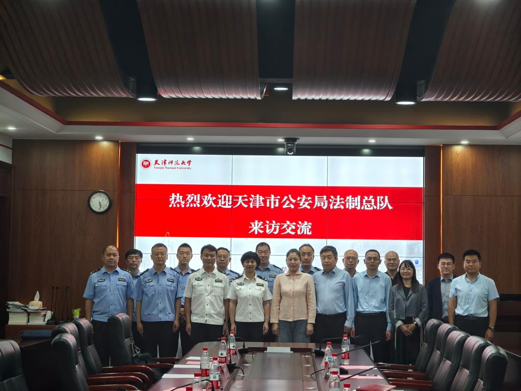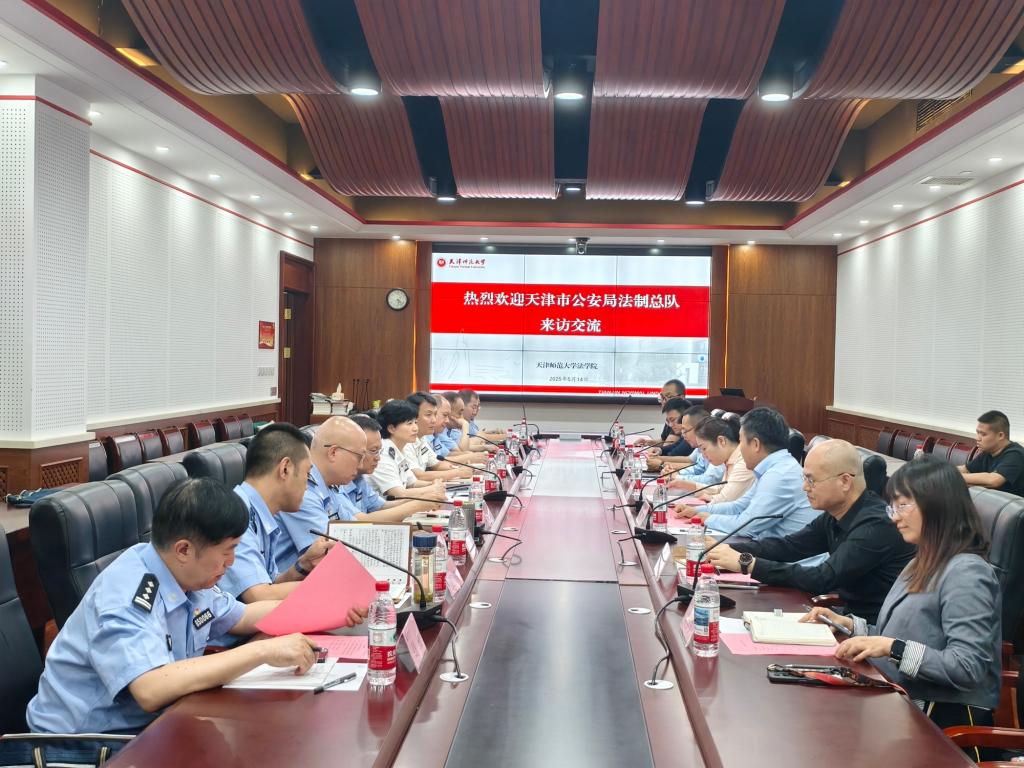 本站讯(通讯员 侯慧秀)近日,天津市公安局法制总队党委书记、总队长、一级高级警长李明霞,党委副书记、政委、一级高级警长邱云一行到beat365中文版官方网站法学院座谈交流。法学院党委书记何璐、院长郝磊接待。法制总队副总队长、三级高级警长高阳,副总队长、四级高级警长颜平杰和法学院党委副书记、纪委书记秦浩,刑法教研室主任王海军教授,宪法与行政法教研室主任郭庆珠教授及青年教师代表参加座谈。
