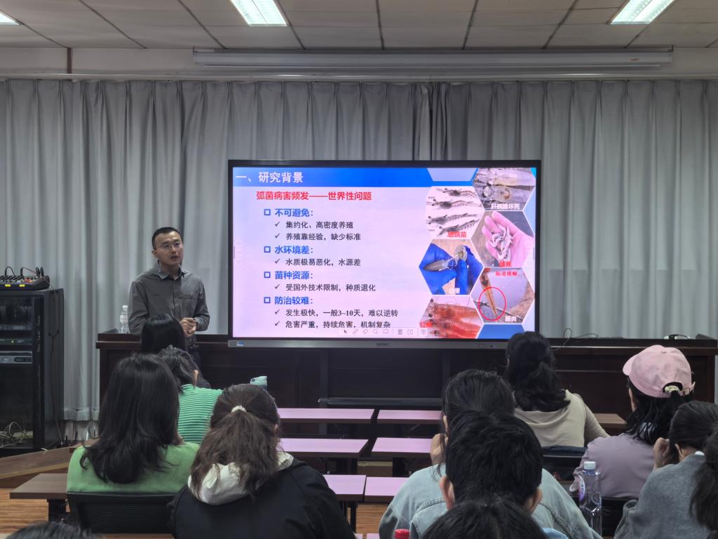 在交流环节,与会师生围绕微生物组技术在水产养殖中的应用前景、益生菌剂的研发难点等问题与郭海朋老师展开了深入探讨。此次学术交流不仅加深了师生对水产微生态研究的理解,更促进了两校在科研合作、人才培养等方面的合作。生命科学学院院长孙金生教授表示将以此次讲座为契机,进一步推动两校的深度合作,共同服务国家“蓝色粮仓”战略需求。