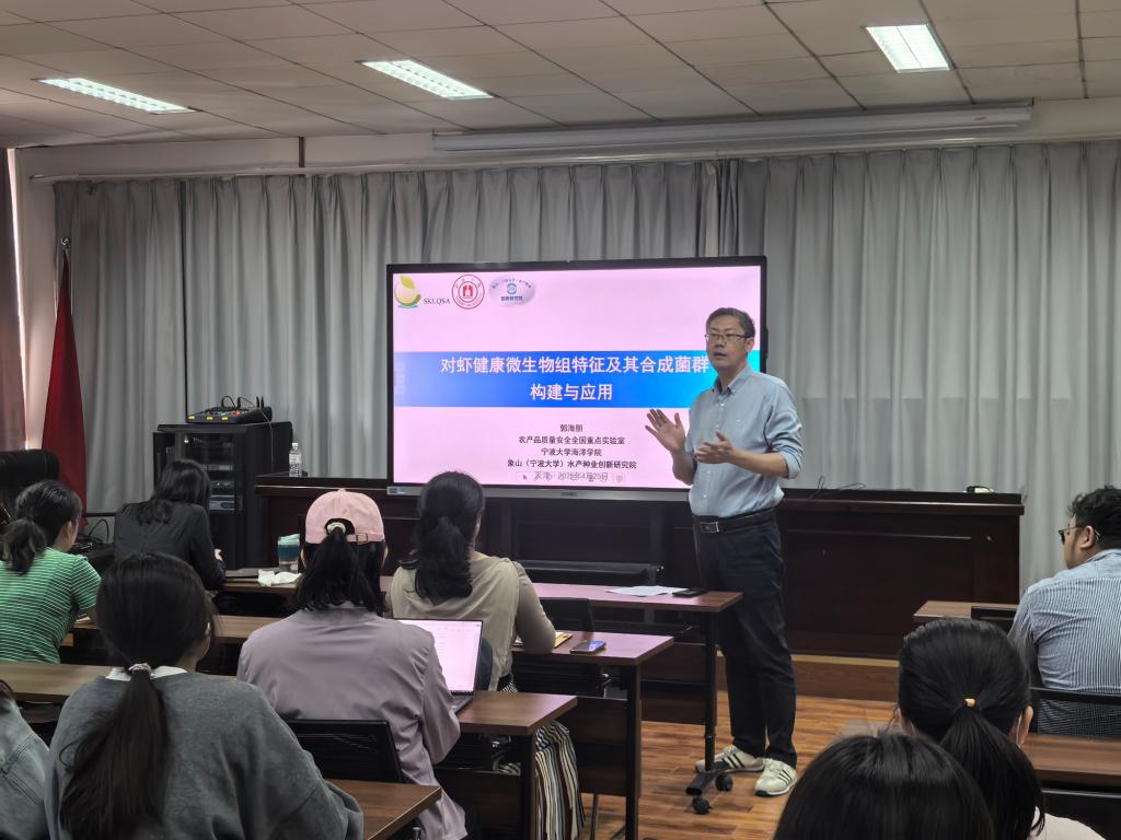 本站讯(通讯员 单一鸣)近日,宁波大学海洋学院郭海朋副教授应邀来beat365中文版官方网站生命科学学院,作了题为"对虾健康微生物组特征及其合成菌群构建与应用"的学术讲座。讲座由生命科学学院副院长闫春财主持。