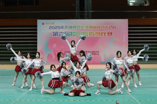 本站讯(通讯员 吕天宇)5月8日第六届校园啦啦操比赛在体育馆羽毛球场开赛。来自全校18个学部(院)的参赛队伍以激情与创意点燃赛场。