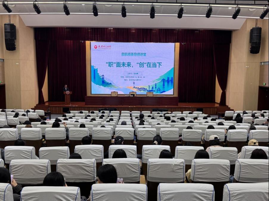 张延鹏以“职业发展的破局之道”为主线,从自身创业经历出发,通过鲜活案例深入剖析了新业态下的职业发展路径与机遇。他表示,在当今数智化飞速发展的时代,研究生不仅要具备扎实的专业知识,更需培养创新思维与实践能力,以适应快速变化的市场需求。他分享了自己在创业过程中遇到的挑战与困境,以及如何通过团队协作、资源整合与技术创新,逐步实现项目突破与企业成长。张延鹏围绕就业主题,从简历撰写、面试技巧、谈薪攻略、跨专业就业的可行性、公司选择以及不同类型企业的待遇等六大方面,为研究生们进行了详细而深入的讲解。他的讲解生动、实用,为研究生们打开了一扇通往职场的大门,让研究生们对未来的职业发展充满信心与期待。
