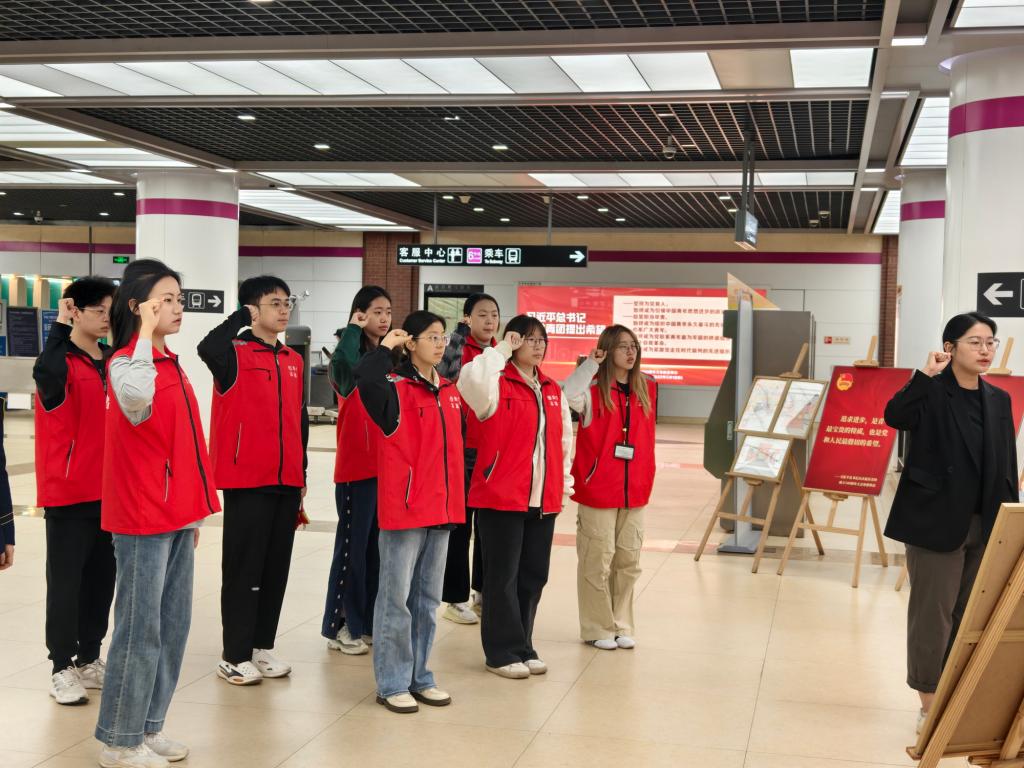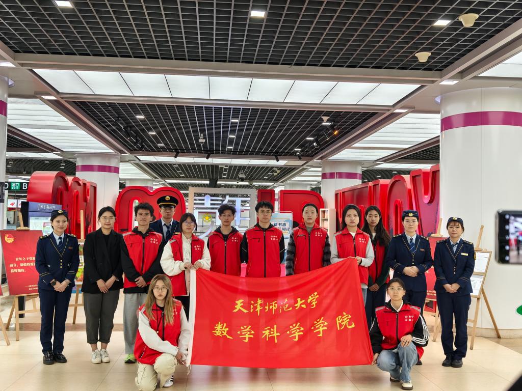 本站讯(通讯员 上官萌萌)值五四青年节来临之际,为动员和激励广大团员青年继承和发扬五四精神,全面展现青年奋发进取、积极作为的新时代精神风貌,5月2日上午,数学科学学院团委在“共青团主题车站”天津地铁6号线乐园道站开展纪念五四青年节主题活动暨新发展团员入团仪式。院团委副书记田尚慧、新发展团员代表参加了活动。