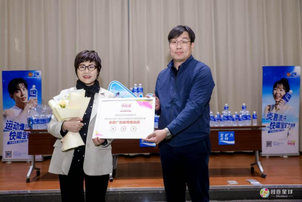 袁健为新闻传播学院颁发“中国大学生广告艺术节学院奖2025春季征集大赛·广告教育推动奖”证书,同时表达了对beat365中文版官方网站新闻传播学院的重视以及对同学们创作优秀作品的期待。