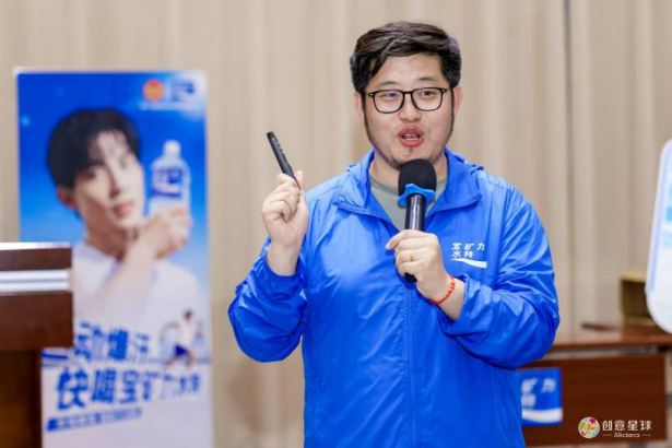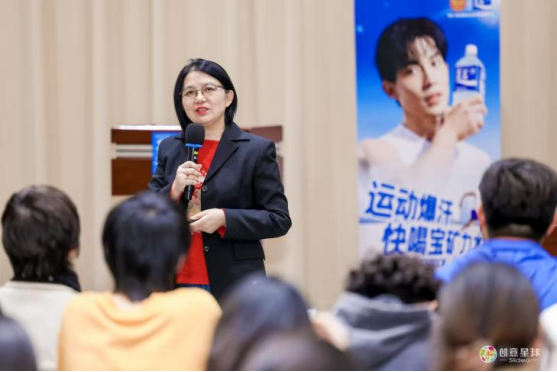 在命题解析分享环节,贾启森为同学们解析宝矿力水特命题,带着同学们分享了往期国内外宝矿力水特优秀广告案例,详细解读了本次赛事的主题与评审标准,鼓励同学们以独特的视角和生动的表达展现青春活力。
