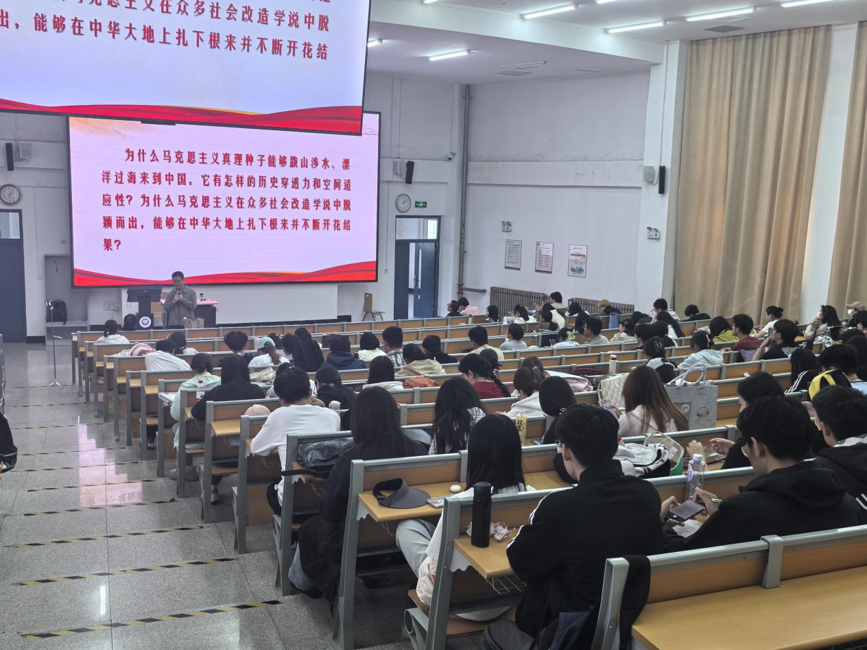 马洪顺从“理论来源:归根到底是马克思主义行”“理论创新:坚持两个结合形成重大理论成果”“实践效果:革命、建设、改革的伟大成就”“实践要求:自觉践行是理论保持生机活力的秘诀”四个方面对党的创新理论成果进行了详细解读。他从“马克思主义的真理种子为什么能够在中国生根发芽、开花结果”为导引,用大量的史实、数据、故事深刻阐发了中国共产党坚持“两个结合”,用马克思主义中国化时代化理论成果指导实践并取得伟大成就的过程,最后结合警示案例带领积极分子们思考“如何做到对党的创新理论笃信笃行”,号召青年学生“将个人的理想追求融入党和国家事业之中,胸怀“国之大者”,为强国建设、民族复兴伟业贡献青春力量!”。他呼吁学员们积极践行党的创新理论,在科技创新、社会服务等领域勇担使命,以实际行动让理论焕发出新的生机活力,成为推动个人成长与国家发展的强大精神力量。