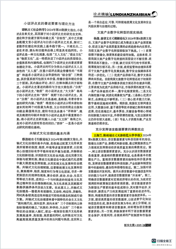 本站讯(通讯员 张珵)《beat365中文版官方网站学报(社会科学版)》2024年第6期文章《语言新质生产力的内涵、样态和发展路径(笔谈)》中的《释放语言数据要素价值 推动新质生产力发展》(作者:王海兰、陈柏福,特约编辑:李永俊 张朝霞 ,责任编辑:关英明)论点被《新华文摘》2025年第3期摘编。