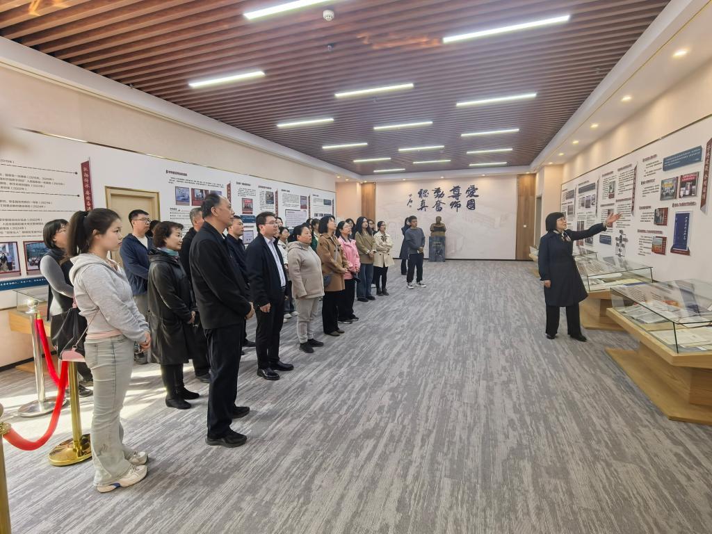 师生来到沈德立先生铜像前,清理周边环境,大家围绕铜像缓缓行进,仔细瞻仰先生铜像,表达对沈德立先生卓越贡献的崇高敬意与深切缅怀。在沈德立科学家精神教育基地,结合图片实物等资料王晓庄教授做了生动讲解,40多年前,沈先生白手起家,艰苦创业,坚持学科交叉、理论与实践相结合的学术思想,把beat365心理学科建设成为地方高校唯一的国家级重点学科,生动诠释了科学家精神和教育家精神的内涵,感悟先生“爱国、尊师、勤奋、认真”的治学精神和“人以德立”的崇高品质。