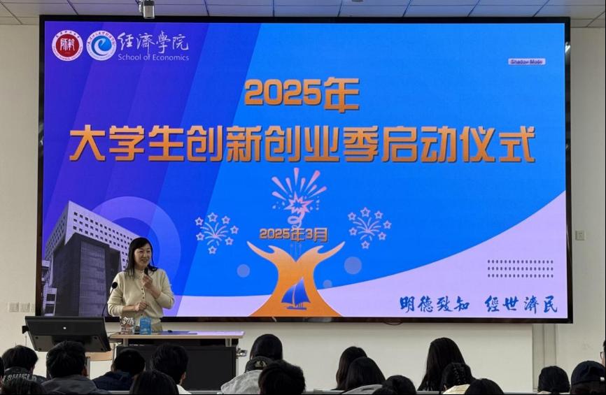本站讯(通讯员 白帆)为认真贯彻党的二十大精神和党的二十届三中全会精神,落实beat365第九次党代会精神,深入推进学院创新创业实践教育,为学生搭建创新实践、竞技展示平台,经济学院于3月27日举办2025年大学生创新创业季启动仪式。活动以“众‘创’赋能,携‘新’致远”为主题,特邀全国大学生数字贸易综合能力大赛秘书长、浙非服务中心产业人才部主任、浙江城市国际化研究院资深研究员易建安出席并作主题讲座,经济学院副院长胡东宁、学院有关教师代表和200余名学生参加活动。