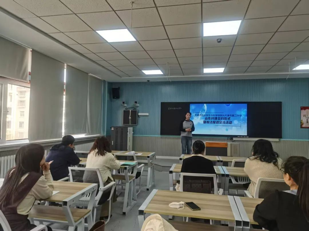 共建仪式结束后,学生代表与二中教师联合开展教法促进交流,三名学生精心准备了8分钟试讲课程,由生物组教师进行现场点评指导,随后集体观摩高三生物示范课程。活动最后,生命科学学院师生一行参观了二中校史长廊、理化生智能实验室及人工智能实验室等特色育人场所。