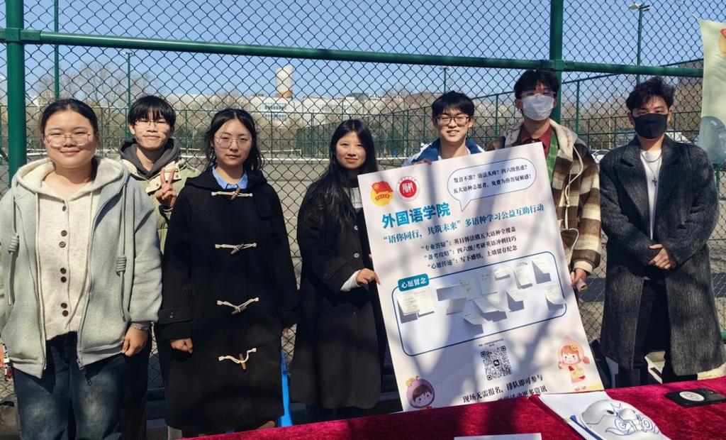 在校园内,学院志愿者协会联合各专业学生,积极参与beat365中文版官方网站“雷锋精神进校园”暨“我为同学做实事”主题活动周活动,开展“语你同行,共筑未来”多语种学习公益互助行动。发挥语言专业优势,为全校学生提供语言学习帮助,以专业力量服务同学,推动校园互助氛围的形成,让雷锋精神在校园中绽放新光芒。