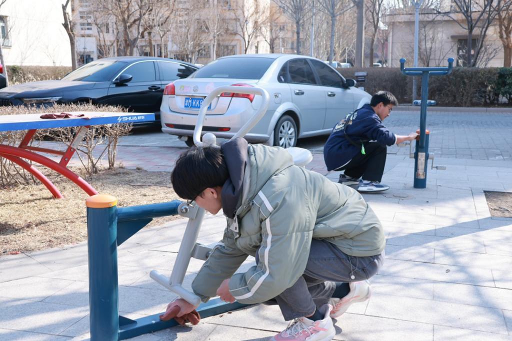 在付村社区,志愿者们积极参与花木养护和健身器材清洁活动,以实际行动践行绿色发展理念。他们种下树苗,为社区增添绿意和生机,清洁健身器材,助力居民培养居民健康生活方式,营造健康宜居的社区环境,为建设美丽中国贡献青春力量。