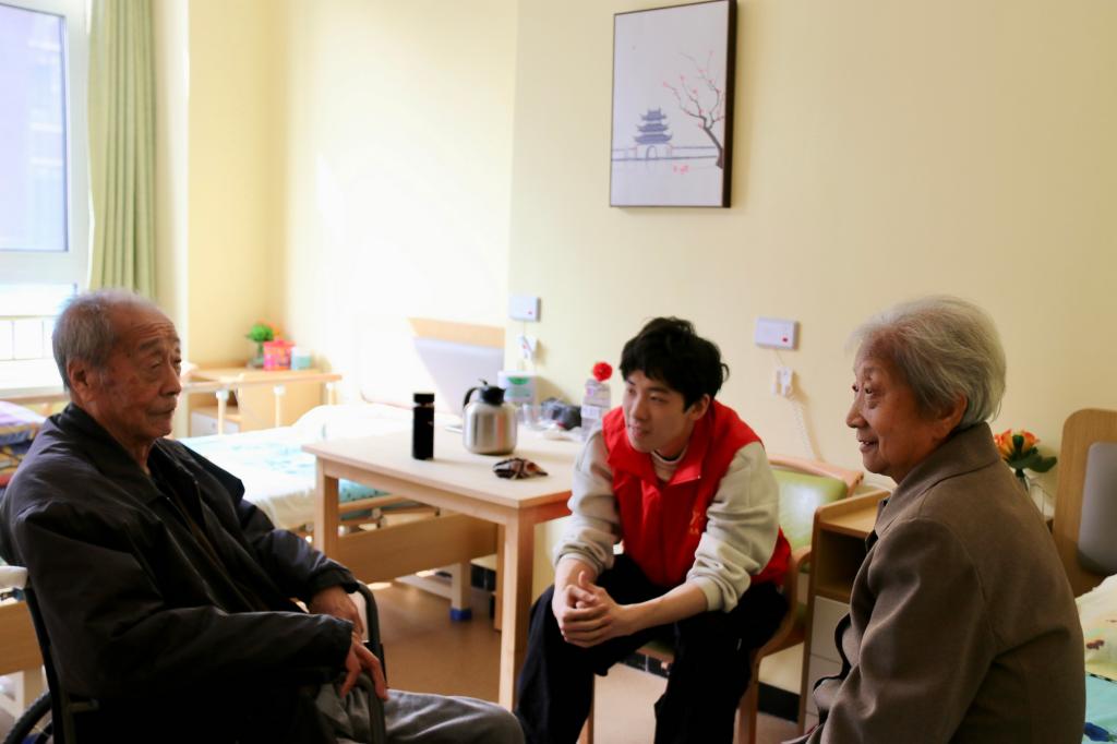 学院青年学子身着红色马甲走进西青区第一养老院,他们陪老人下棋、聊天,搀扶老人到院子里晒太阳,倾听老人们讲述过去的故事,分享生活中的趣事,欢声笑语充斥着整个养老院。志愿者用自己的努力,给老人带去关爱、欢乐和温暖,树立新时代青年榜样,营造全社会尊老爱老敬老的良好风尚。