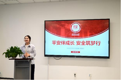 阿迪拉从校园日常安全问题入手,全面讲解了网络安全、消防、心理健康等安全知识,明确安全委员岗位职责,鼓励青年学生担当作为;杨勇以其幽默风趣的讲述方式将校园真实案例分享给与会师生,提出强化责任意识,共同维护校园安全;乔林从公寓安全角度出发,强调了宿舍安全用电和消防防火的重要性;赛宁宁为大家讲解了水痘等传染病的防治及处置方法;郝俊会通过生动的案例深刻解析校园常见电信诈骗形式,提示同学们对各类诈骗手段及其防范要点有了更加全面透彻的认识。