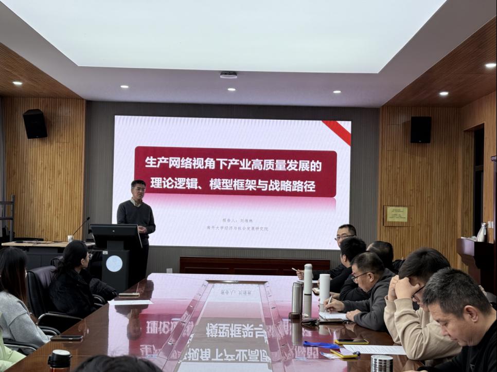 本站讯(通讯员 白帆)近日,经济学院邀请南开大学经济与社会发展研究院副院长刘维林教授做客经济学院学术讲坛,围绕“生产网络视角下产业高质量发展的理论逻辑、模型框架与战略路径”与学院师生展开深入交流。