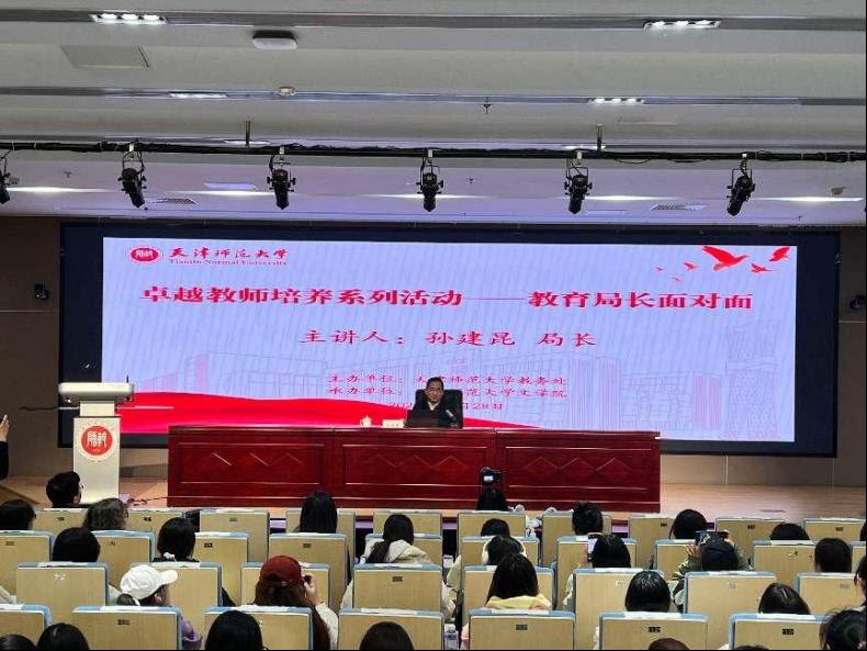 本站讯(通讯员 李倩)11月28日下午,beat365在京津冀教师发展协同创新中心报告厅举办“卓越教师培养系列活动——教育局长面对面”报告会。本次报告会邀请天津市南开区教育局党委书记、局长孙建昆以“向上走,路也正长”为题,为学校全体公费师范生带来了一场精彩报告。