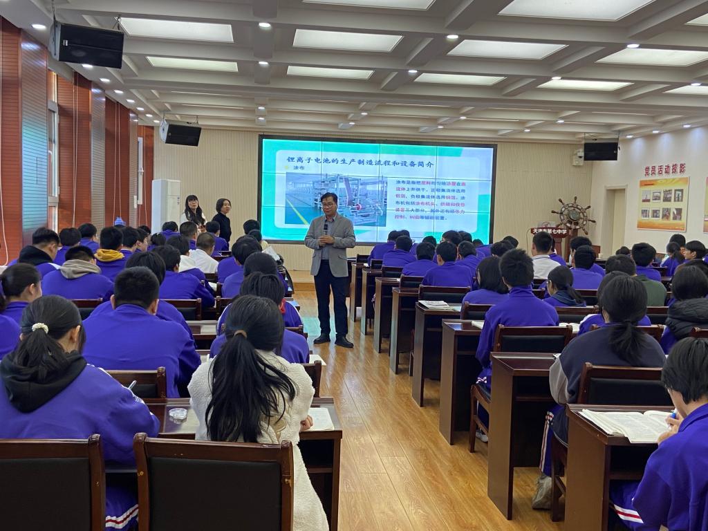 签约仪式后,天津市特聘教授代克化举办“能量的奇妙旅程:探索锂离子电池与未来储能的秘密”科普讲座,从人类能源史讲起,回顾能源利用历程,讲解锂离子电池工作原理、性能及优缺点,并分享中国在锂离子电池研发和应用方面的成就及新研究方向。