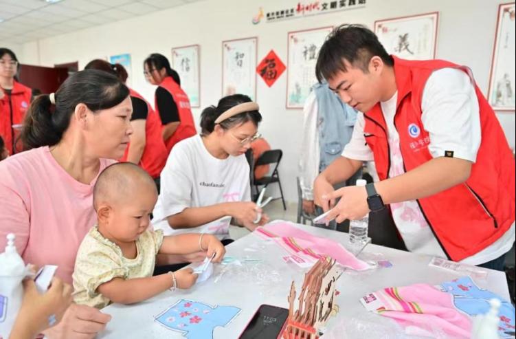 在动手环节,志愿者们为大家准备了丰富多彩的民族服饰手工材料,现场的小朋友们在家长的帮助下细致裁剪、精心粘贴,动手动脑的过程中,形象地了解了各民族服饰的特点,将民族文化内化于心。