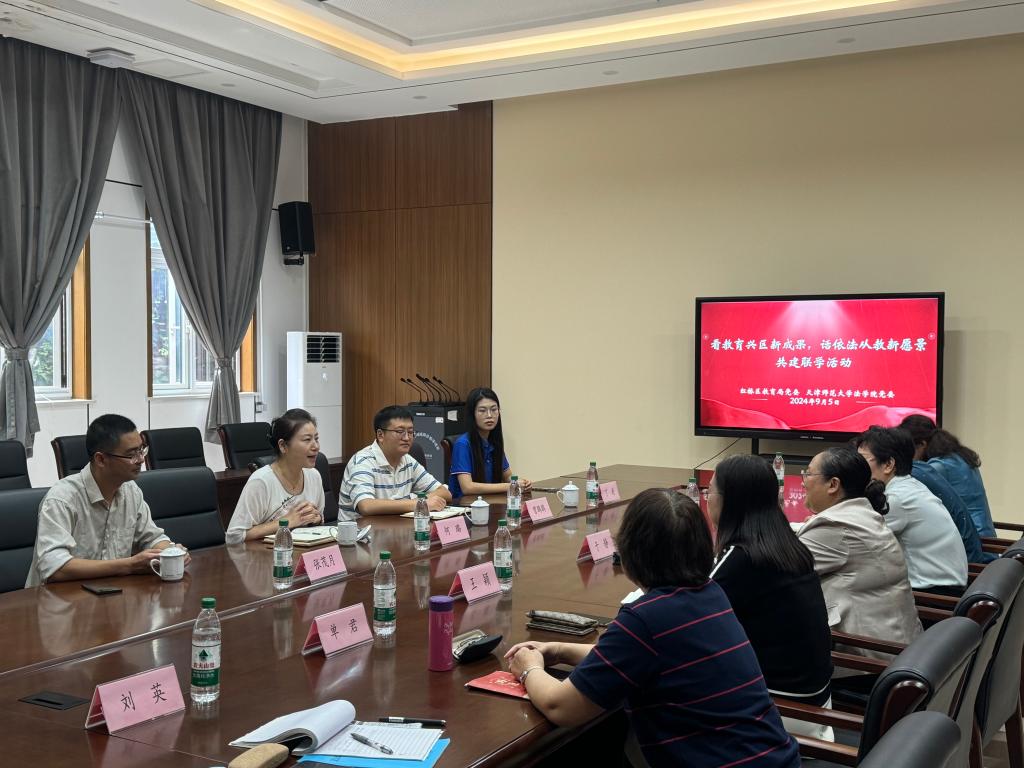 法学院消息(通讯员 王欣)9月5日,法学院与红桥区教育局联合开展“看教育兴区新成果,话依法从教新愿景”共建联学活动。法学院党委书记何璐,红桥区教育局党委副书记、副局长于静,红桥区教师发展中心副主任王颖,红桥区教育局党建科科长马俐娜及红桥区中小学和幼儿园党员干部代表、学院师生代表参加活动。