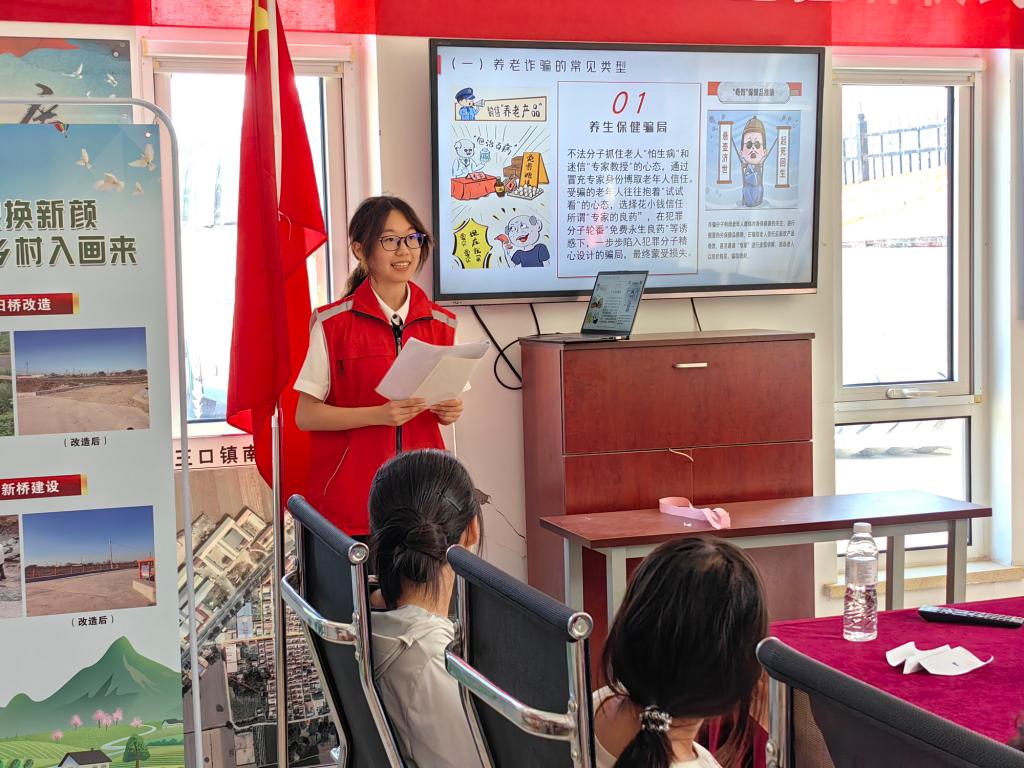 在科普活动之余,实践团成员还进行了红色精神宣讲和反诈宣讲,以简洁明了、通俗易懂的语言,传承红色基因,让党的创新理论飞入寻常百姓家。通过防诈骗宣讲,讲解典型案例,提醒村民注意防范新型骗局,提升了村民的安全意识。