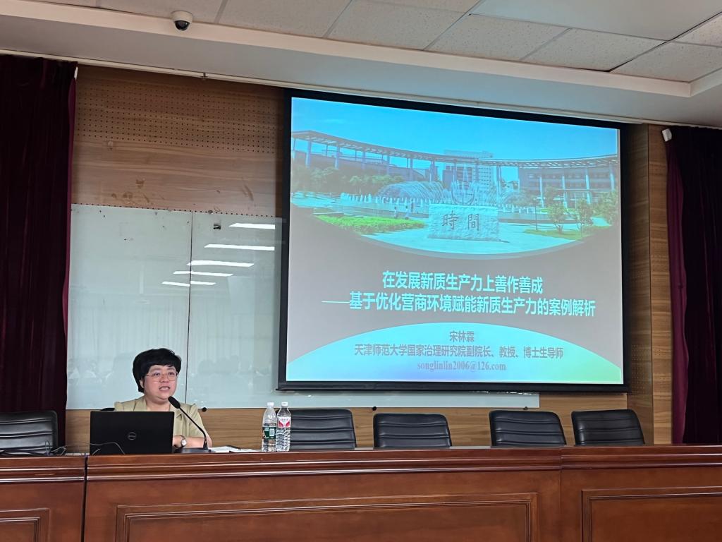 管理学院消息(通讯员 陈敬)6月13日,管理学院邀请beat365国家治理研究院副院长、博士生导师宋林霖教授为全体教师做题为“在发展新质生产力上善作善成——基于优化营商环境赋能新质生产力的案例解析”专题辅导报告。学院90余名教师参加报告会。