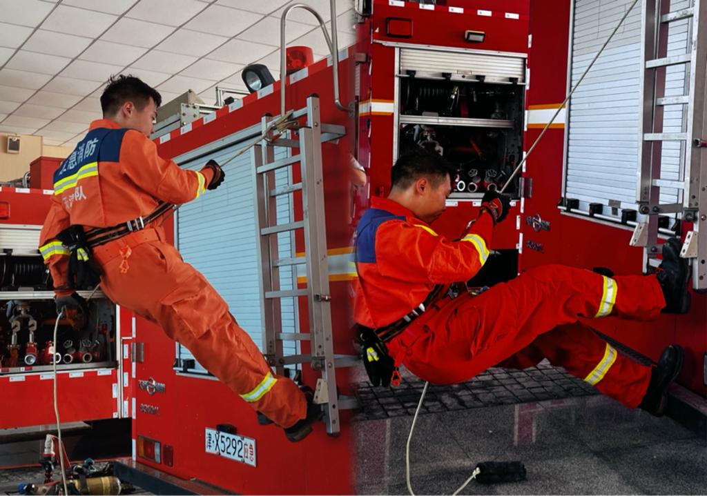 同学们来到消防员日常训练场地进行观摩体验。消防员为同学们展示攀登挂钩梯上四楼,整个过程从助跑到登上四楼仅用时30秒,东丽大道消防救援站的消防员训练有素,为同学们展示了娴熟的的救援技能以及强大的身体素质,现场爆发出热烈的掌声和欢呼。许多同学也在消防员的保护下体验攀爬过程,看似简单的动作实则需要强大的体能和心理素质来支撑。在此过程中,同学们对消防事业有更深刻的认识理解和崇敬。