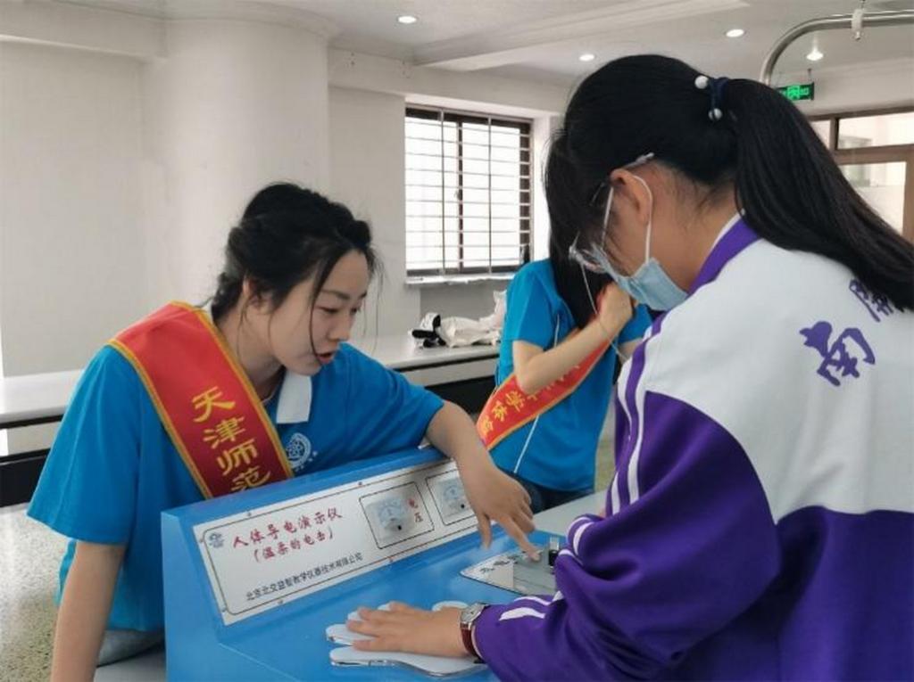 物理与材料科学学院消息通讯员 郝健强)物理与材料科学学院物理学本科生第一党支部始终秉承科普思政育人理念培养党员干事创业能力,不断加强党支部建设,教育引导党员争当先锋、再立新功。今年全国科技活动周期间,党支部与大江路小学、南开中学、蓟州区东施古镇初级中学、西青区恒益隆庭社区开展了“大手牵小手,快乐科技行”科普实践活动。全体党员穿梭在场馆、学校、社区之间,以“小老师”的身份进行了4站科普实践活动,掀起中小学生物理科普学习热潮,将科普思政打造成党支部服务人民群众的亮丽名片。
