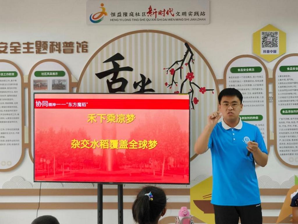 5月22日是袁隆平院士逝世三周年纪念日,支部党员走进西青区恒益隆庭社区带领学生们开展了科学家精神宣讲,一起重温了“杂交水稻之父”袁隆平的感人故事。同时,还带领社区小朋友进行了物理“动手做”活动,制作了“贪婪的钱匣子”,学习了平面镜成像原理。党支部党员通过“进社区”进一步丰富了弘扬科学家精神和开展物理科普活动的平台,引导中小学生心怀科学梦想,树立创新志向,助力实现全域科普。