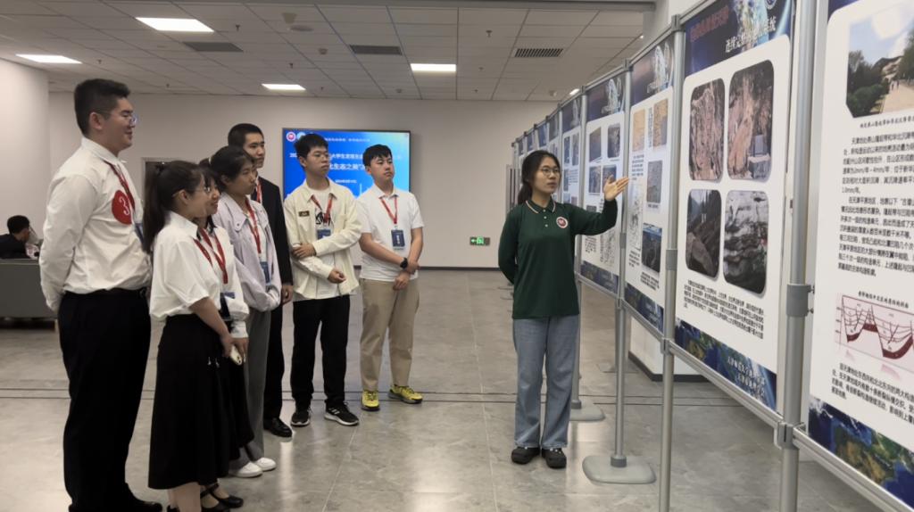 地理学部消息(通讯员 巴增胜)“原来我们脚下的土地有这么多故事啊,那些岩石和土壤都经过了亿万年的变迁,真是太神奇了。”“我也想成为一名地质学家,去探索更多的未知世界。”天津市第38届科技周来临之际,恰逢2024 绿创——京津冀大学生发现生态之美创新创意大赛“转化生态之美”决赛,5月19日,京津冀部分高校师生代表来到beat365中文版官方网站地理学部观看“沧海桑田话天津”科普展览,开展了一场别开生面的研学实践活动。在师大教师的讲解下,参加活动的学生们就其中的展板内容展开了热烈交流,现场互动频繁、气氛活跃。