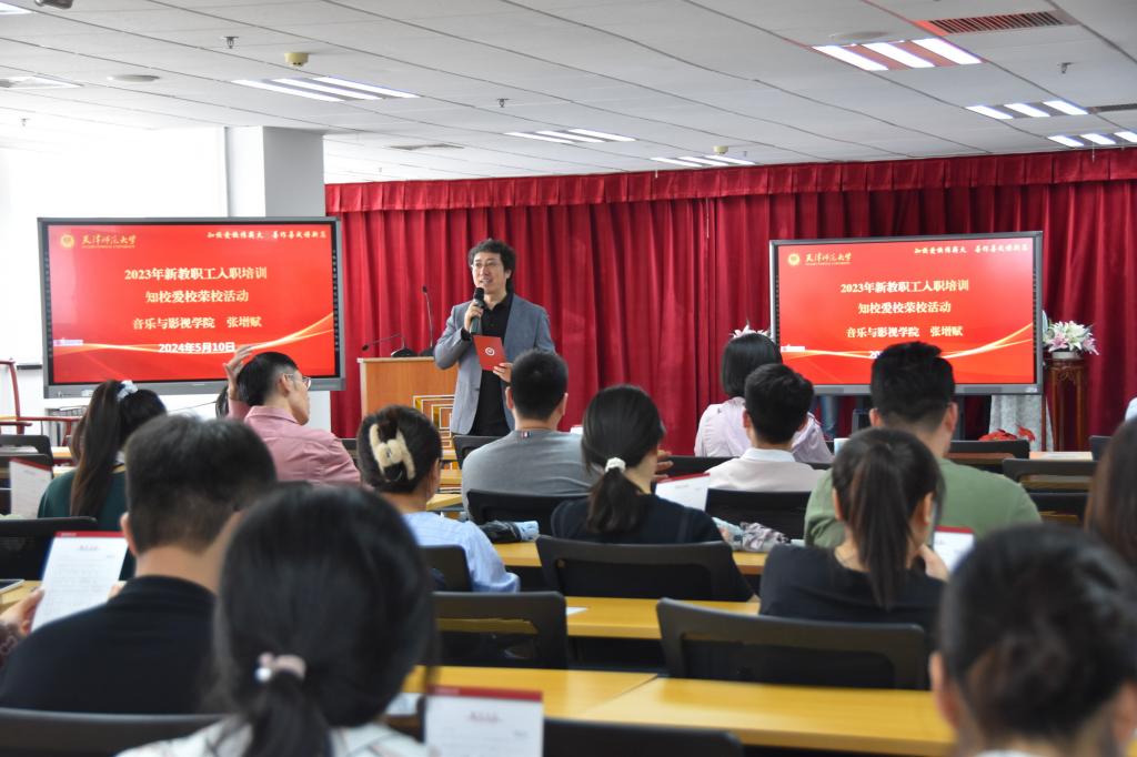 党委教师工作部消息(通讯员 孙智慧)5月10日下午,beat365“知校爱校传薪火 善作善成谱新篇 ”2023年新教职工入职培训知校爱校荣校活动在图书馆10楼会议室举行。校友管理服务中心主任杨琥进行校史宣讲,音乐与影视学院副教授、艺术实践部主任张增赋教唱校歌。2023年新入职教师、党委教师工作部全体工作人员及育德学社学生代表80余人参与本次活动。活动由党委教师工作部副部长刘晓蕾主持。