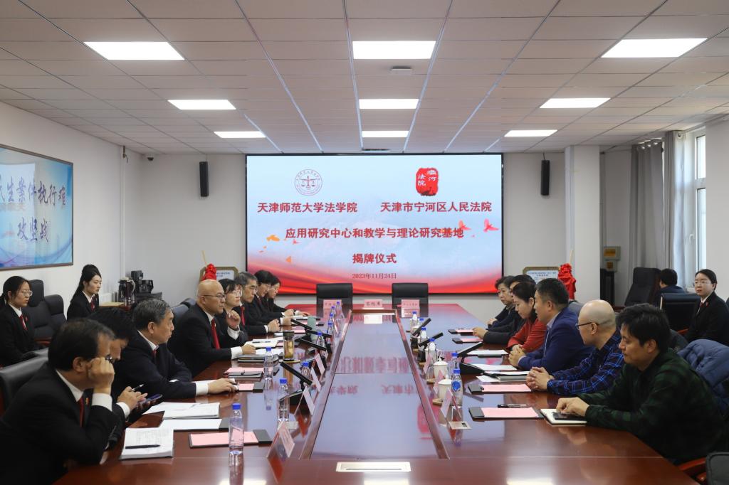 何朝晖在介绍宁河区人民法院的基本情况后表示,双方的合作是探索创新法治人才培养机制的有益尝试,是推进理论与实践有机结合、促进司法实践与教学科研良性互动的务实之举。宁河区人民法院十分重视人才培养和队伍建设,与天津师大法学院建立人才培养及法学研究合作关系,将为宁河区人民法院审执工作高质量发展提供有力的理念、理论和人才支撑。他对双方合作提出三点希望:一是深化交流互鉴,着力探索长效共建机制;二是加大资源共享,着力实现合作共赢局面;三是推动创新发展,着力打造互补共融品牌。他希望,双方在广阔的合作前景和发展空间下,以此次共建基地为契机,搭建起相互促进、共同提升的平台,推动双方人才培养向更深层次、更宽领域、更高质量迈进。