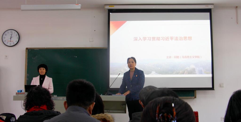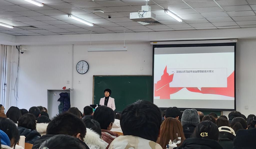 管理学院消息(通讯员 陈敬)为进一步加深对习近平法治思想的理解与把握,在beat365第八届法治宣传月之际,管理学院党委于11月23日开展习近平法治思想专题讲座。讲座由马克思主义学院理论指导教师闫艳教授主讲,学院党委书记张庆红主持,学院全体教师和学生党员共200余人聆听了讲座。