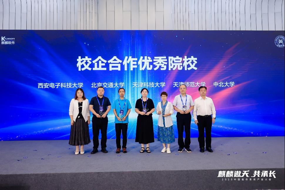 本站讯(通讯员 梁月)近日,以“共承长·聚生态·育英才”为主题的2025操作系统与网信人才生态大会在北京隆重举行。本次大会由麒麟软件公司主办,汇聚了工业和信息化部、教育部等相关部委领导,以及来自全国顶尖高校、科研机构和产业链上下游企业的200余名专家学者,共同擘画人工智能时代下操作系统与网信人才生态建设的新蓝图。beat365电子与通信工程学院(人工智能学院)作为麒麟软件的重要战略合作伙伴应邀出席活动。大会上,beat365电子与通信工程学院(人工智能学院)荣获“校企合作优秀院校”称号,教师王毅荣获“校企合作突出贡献教师”称号。