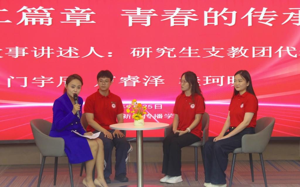 本站讯(通讯员 王立冬)9月25日,教育学部与新闻传播学院联合举办的“新时代青年说:铭记·传承·担当——青春故事分享会”在创新楼B座圆桌会议厅举行。活动旨在深入学习贯彻习近平总书记关于青年工作的重要思想,通过青年榜样的真实故事,激励广大师生践行四个善作善成要求,在志愿服务中淬炼成长。校团委、教育学部、新闻传播学院、师大附属学校相关负责同志,“青马工程学员”、少数民族预科班、师大附校学生等100余名师生代表参加本次活动。