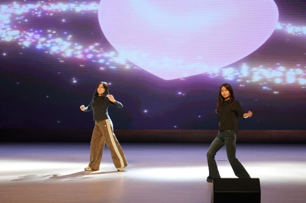 授课结束后,师生联欢活动在热烈氛围中拉开帷幕。节目形式多样、精彩纷呈:街舞《like Jennie》活力四射,点燃全场热情;独唱《冲动》《会呼吸的痛》深情动人,引发共鸣;小提琴独奏《千本樱》技艺精湛,展现艺术修养;合唱《这世界那么多人》《遇见》温暖治愈,传递同窗情谊;朗诵《礼赞天师大》饱含深情,彰显爱校情怀;相声《新生奇遇记》妙趣横生,展现语言魅力;原创歌曲《臆想症》个性鲜明,体现创作才华;爵士舞《Youth Jazz Vibes》节奏明快,绽放青春风采。整场演出掌声不断,欢呼此起彼伏,充分展现了2025级新生的凝聚力、创造力与艺术才华。