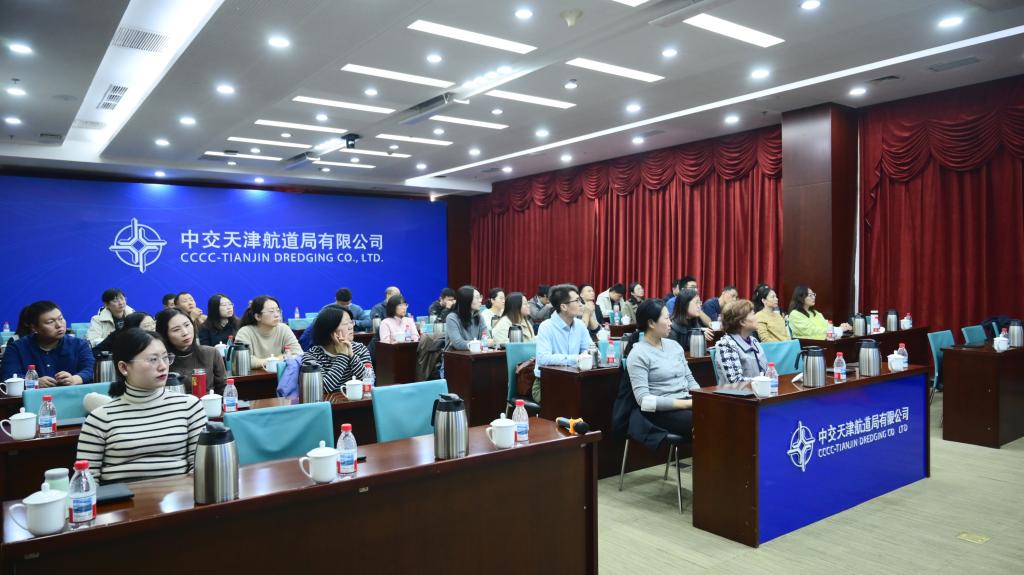 在中交天航局百年天航展览馆内,教师们深入了解这家拥有120余年历史的中国第一家专业疏浚机构、中国现代疏浚业发源地的发展历程,深刻体会到该行业在国家重大工程建设中发挥的战略性作用,既坚守产业报国、富民兴业初心,参与中国沿海各大港口航道建设和各水系流域治理的百年业绩,也为中国乃至世界港口航道建设与经济社会发展作出重要贡献。期间,教师们还聆听天津航道局党委宣传部原副部长、党委办公室副主任韩惠来围绕“海洋强国建设”主题的专题事迹报告,从宏伟蓝图到跨海通途,从浩瀚沧海到万顷良田,真切体悟到一代代中交建设者在重大战略工程建设中义不容辞扛起的历史使命,以及他们在海洋强国建设中奉献的满腔热血与奋斗豪情。