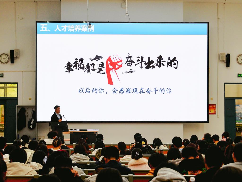 张振卿老师向新生们介绍了学部先进的科研仪器与实验室资源,鼓励大家积极利用,为成长赋能。随后,他分享了多位优秀学生的培养案例——这些榜样从大一起步,深耕科研,既能在高水平学术期刊发表成果,又能在国内重要赛事斩获奖项。这些身边的榜样,极大地激发了新生们的学术热情与进取心。