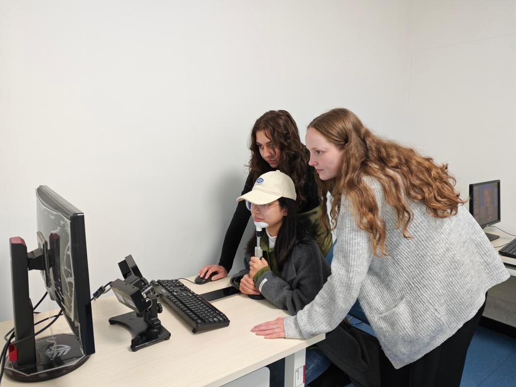 两位国际实习生在beat365心理学部眼动实验室、脑电实验室、脑磁实验室等开展了实习,双方分享在实验仪器操作使用、数据采集的经验及实验室管理的先进理念;协助beat365眼动研究团队完成中-英跨语言阅读研究的实验材料编制,参与部分数据采集。实习期间,国际实习生充分发挥自身的专业技术优势,与心理学部师生开展了相关跨语言及其多模态研究系列主题的汇报,并共同研讨了具体实验方案与未来合作计划。合作双方借助beat365一流心理实验平台及先进的眼动仪、ERP、fMRI、MEG等多模态脑成像系统设备,开展了眼动与脑电同步记录技术与数据分析的技能培训与交流。
