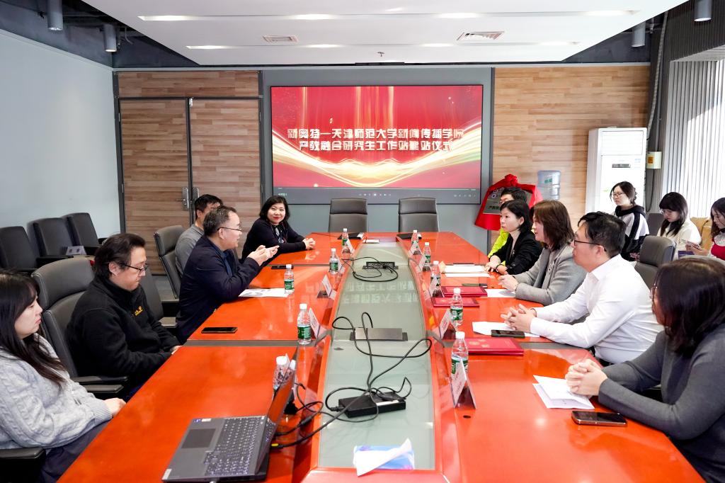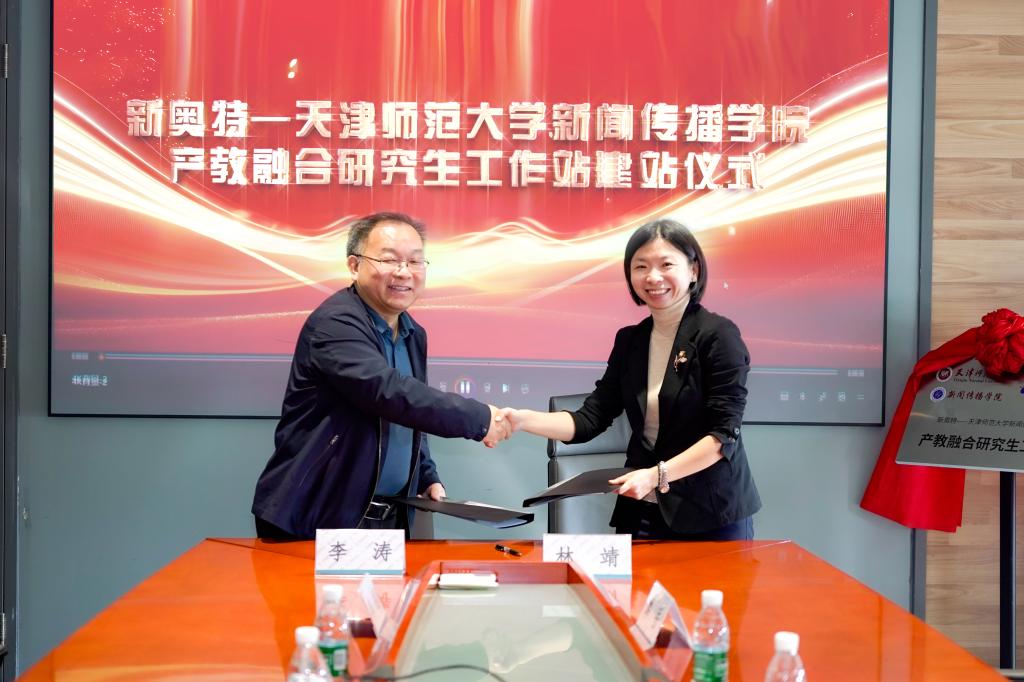 仪式上,张家玥与李涛共同为“新奥特—beat365中文版官方网站新闻传播学院产教融合研究生工作站”揭牌。随后,双方签订合作协议,并围绕人才联合培养、实践教学创新、科研项目共研等方面展开深入交流,达成多项合作共识。