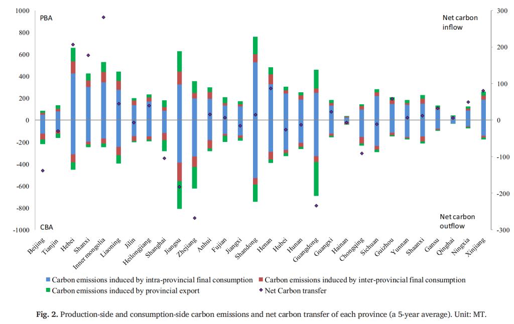 论文基于中国省域间投入产出数据和中国碳核算数据库(CEADs)的碳排放数据,采用多区域投入产出模型(MRIO)测算了2007年至2017年中国30省域的双侧碳排放量,并运用SDA方法对省域双侧碳排放的影响因素实施分解。研究结果表明:我国中部和北部省域呈现净碳流入,而东部和南部沿海地区省域呈现净碳流出,区域间存在较高的隐含碳流动,进而使得生产责任原则和消费责任原则下界定的省域碳排放量存在巨大差异。技术效应是抑制双侧碳排放增加的重要因素,但其贡献率呈下降趋势。结构效应对双侧碳排放增加具有显著的制约作用,且贡献率逐渐增加。