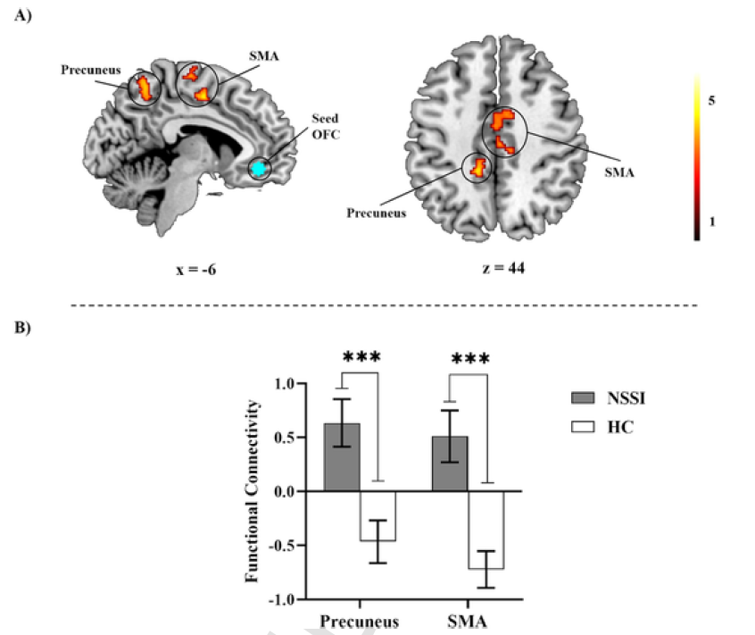 非自杀性自伤 (Non-suicidal self-injury, NSSI) 简称自伤,是指个体在没有自杀意图的情况下故意地、直接地破坏身体组织的行为,并且这种行为不被社会所接受。自伤会给家庭和社会带来巨大的经济损失和负担,并且会引发自杀行为。然而,某些个体倾向于隐瞒他们的真实想法并且回避报告自伤行为,因此自伤的患病率往往可能被低估。因此,探索客观的生物学标志对于识别和理解青少年自伤非常必要。
